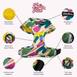 🐶 Bright reflective straps by the chest fastening to ensure safety for your beloved dog on darker walks. We always recommend using your That’s Fetch harness alongside a light-up device on darker evenings for maximum safety.